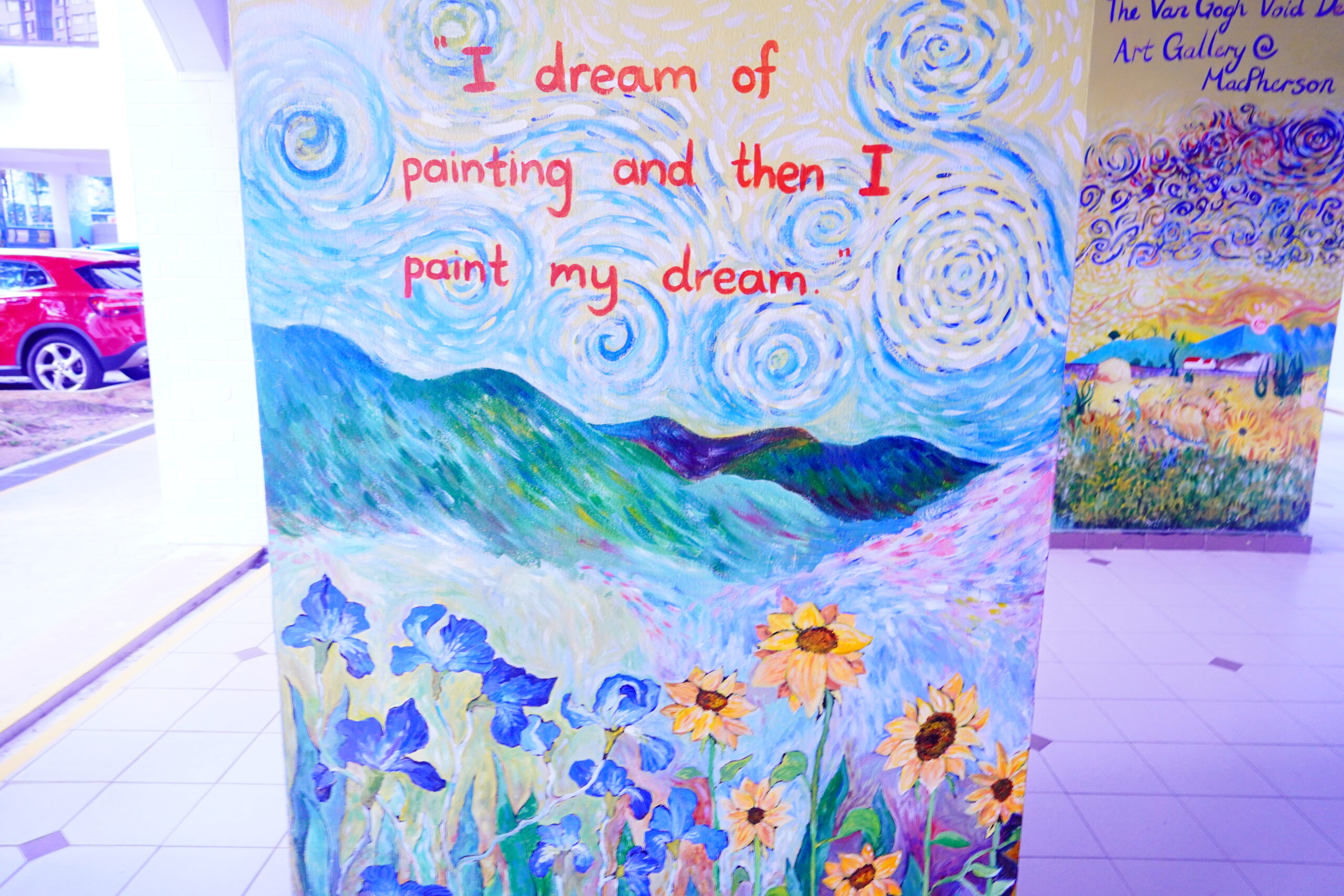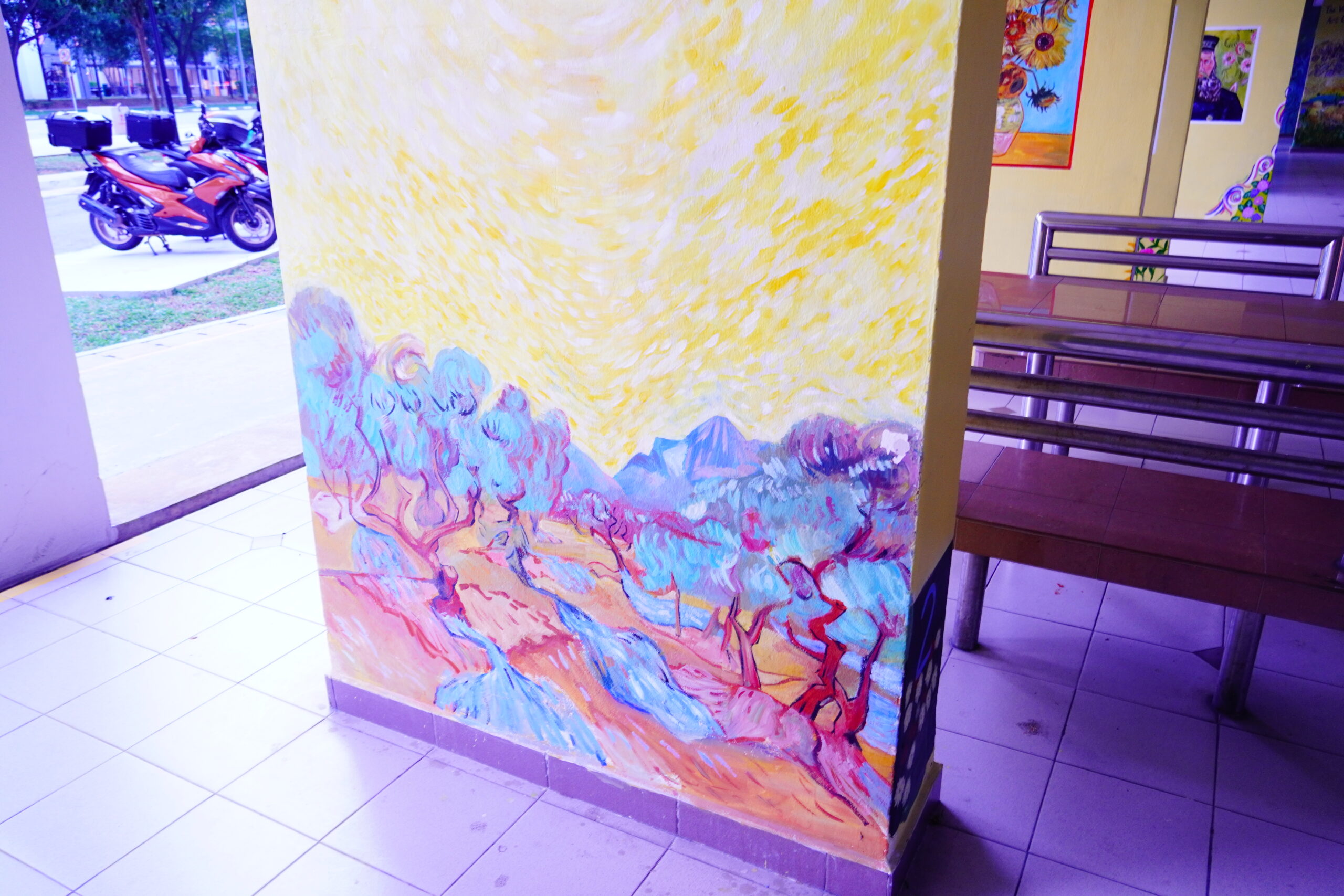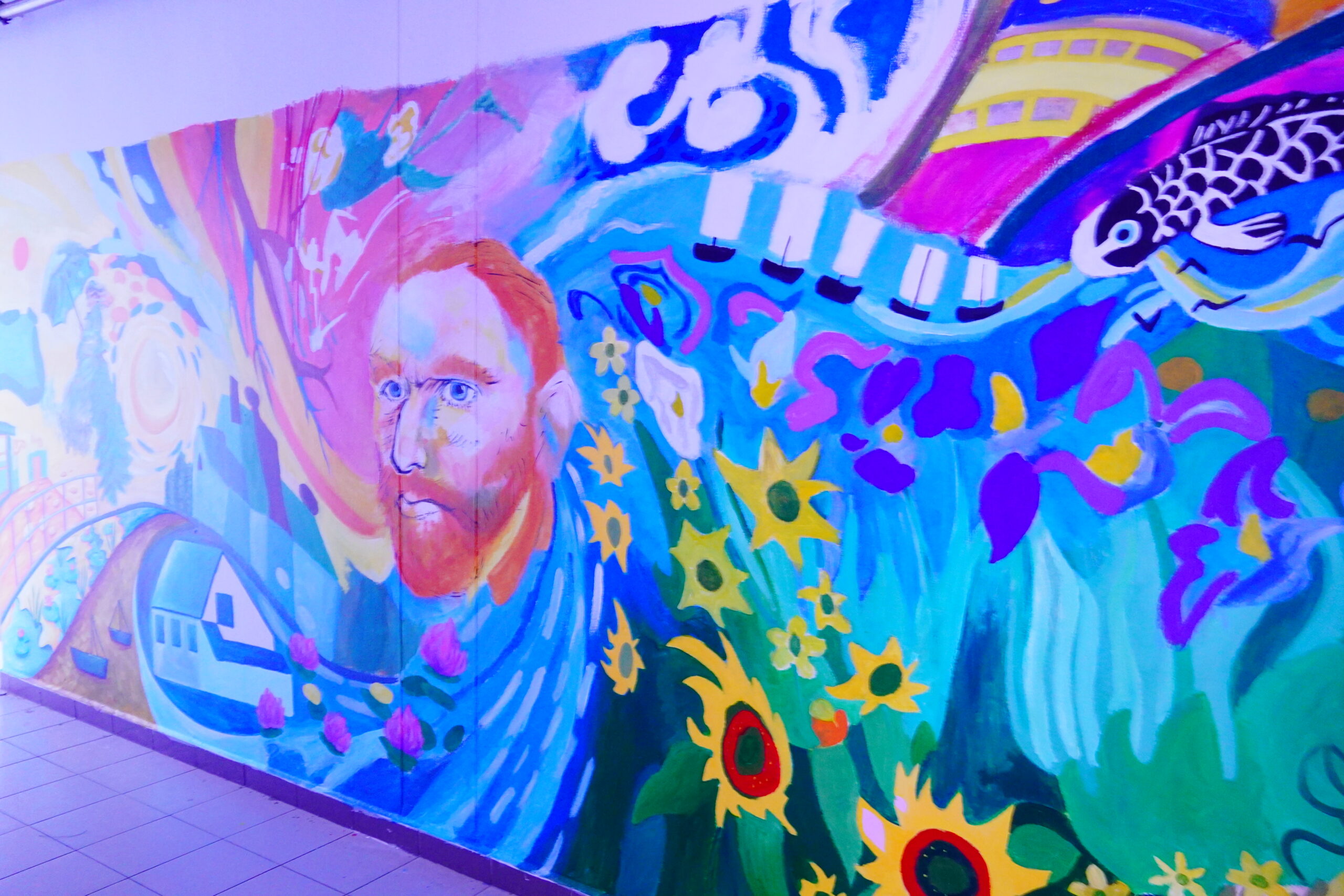 カトンの中心から少し離れた住宅街で、不意に足を止めました。そこには、マンションの開放スペースいっぱいに飾られたゴッホの複製画。風にさらされながらも色鮮やかに輝くその作品群は、住民がこの街に込める愛情そのもののようで、胸を打たれました。日常の中にアートが息づく光景に、しばし時間を忘れます。