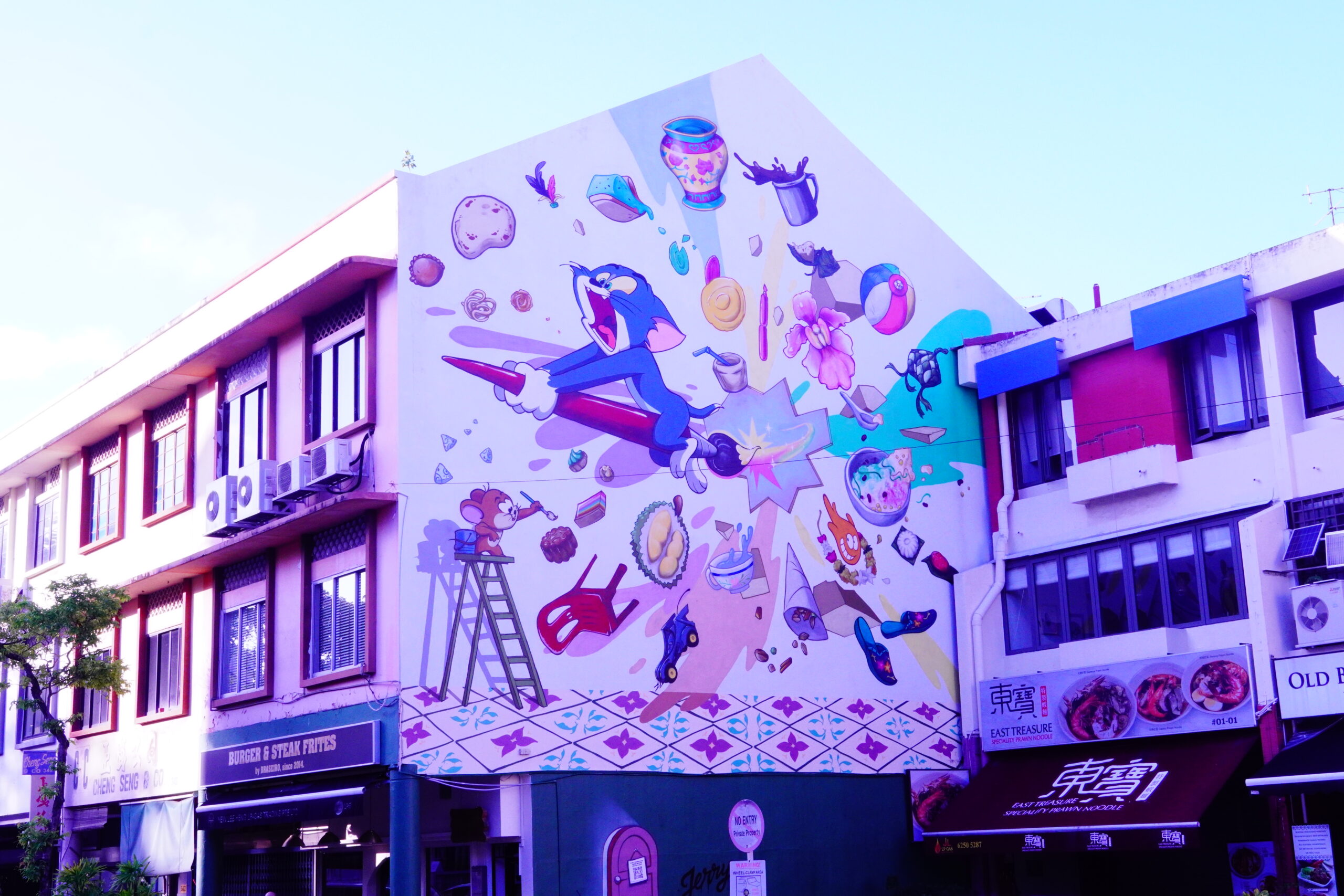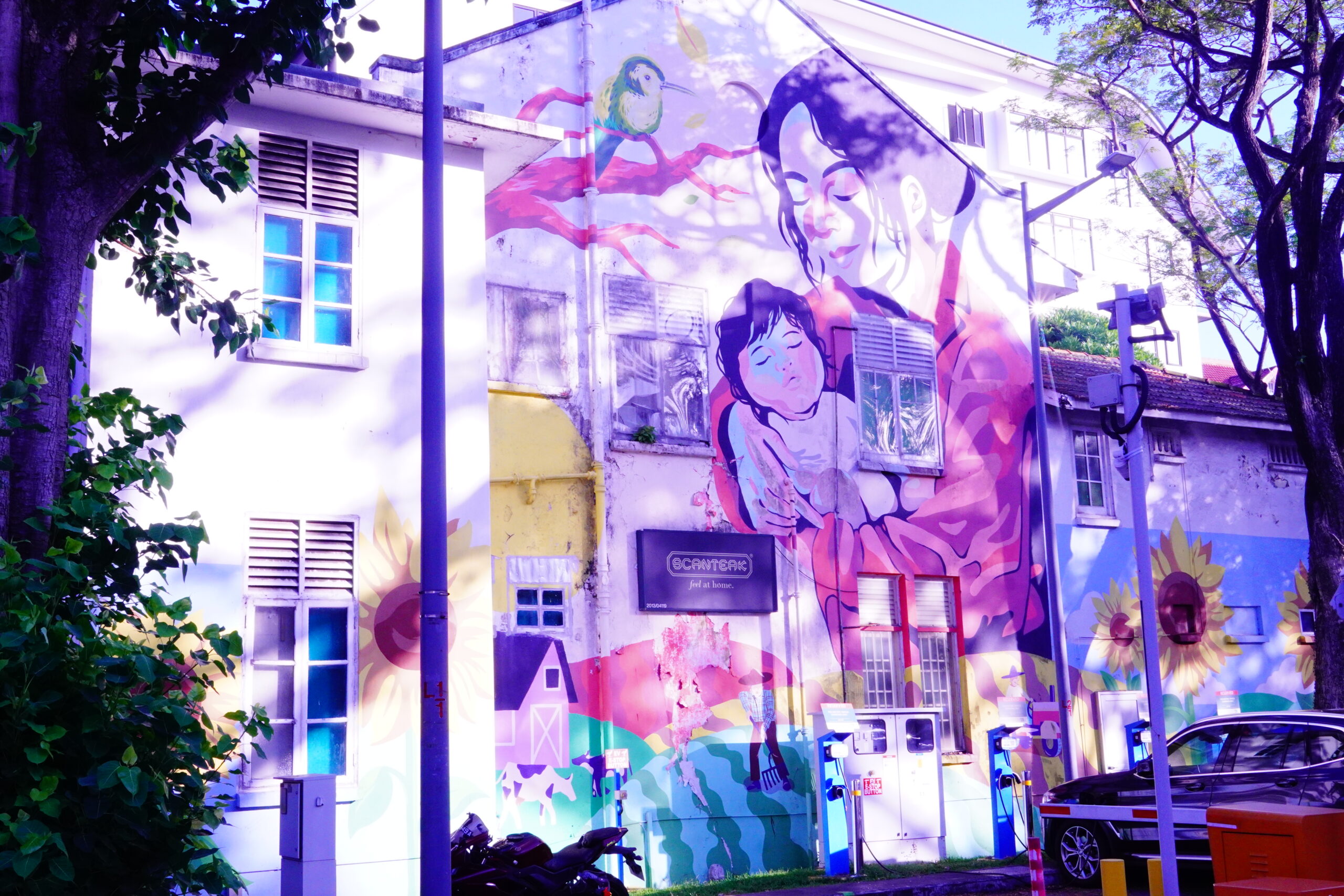 もちろん、カトンのメインエリアでも多彩なウォールアートに出会えます。壁一面に描かれた作品はどれも完成度が高く、色彩の豊かさはまるでプラナカン建築のよう。建物の装飾と呼応するかのように、街全体がひとつのキャンバスとなって訪れる人の心を魅了します。
